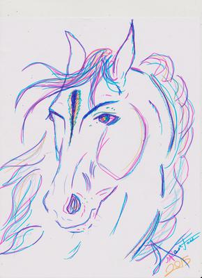 The first one I drew on 4/6/2015 I call him The Dragon Slave because the Dragon has done something with the horse's soul and the horse is turning into a dragon. This Horse has 14 Dragon horns and tusks.