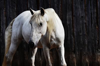 I led him slowly towards the paddock next to the barn. I went inside and unclipped the halter. The horse trotted a few feet away but then stopped watching me as I closed the gate.
