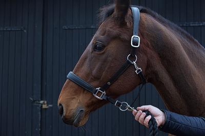 "Hey there, handsome boy. I'm going to take you to that paddock and get you something to eat. How does that sound?"