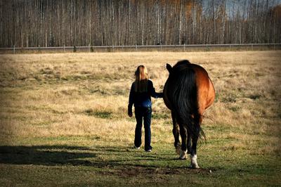 We soon pulled into the long driveway which led to Dad's house. Then I saw the horses. I could not wait to ride them. But I didn't know that they would be such a big part of my life at the moment. I was just focused on riding them and seeing Dad. I got out of the car and saw my dad standing at the door. He walked over to help me with my bags. Then I said good-bye to mom and she drove away. I didn't know that this would be the first step to my recovery. It hurt deep down to think about it, so I kept my eye on the horses.
