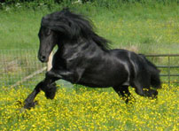 The stallion galloped towards the girl. He would not stop until she was looking into his eyes. He was a 17'2" hand high frisian with a lot of power.