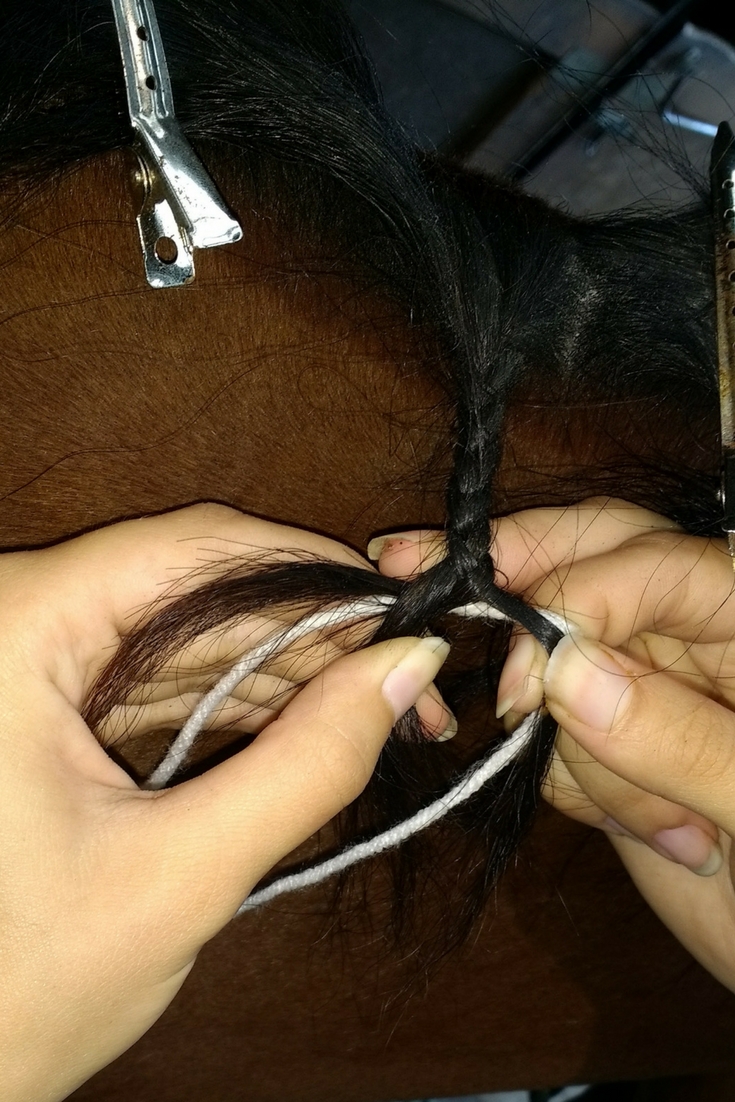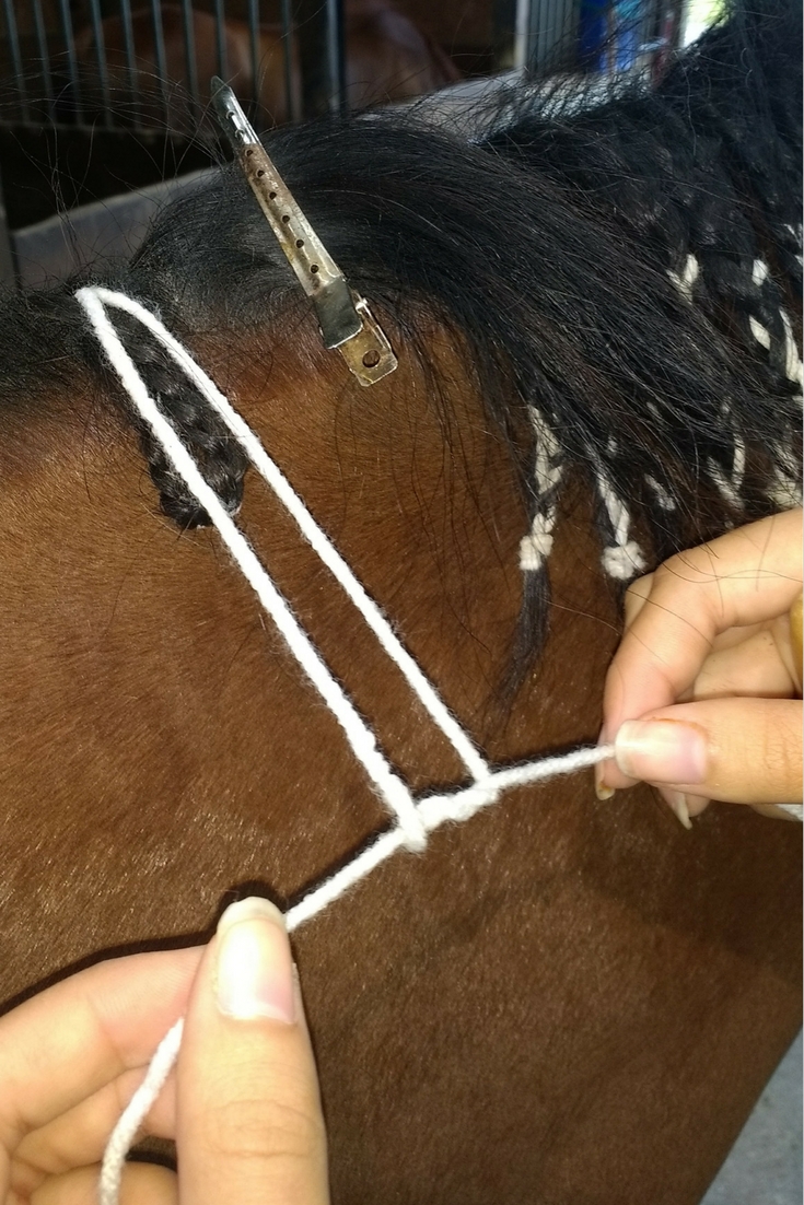 *Just remember when you are practicing it can be helpful to use a color of yarn that doesn't match your horses mane/tail that way you can follow what you are doing more closely.