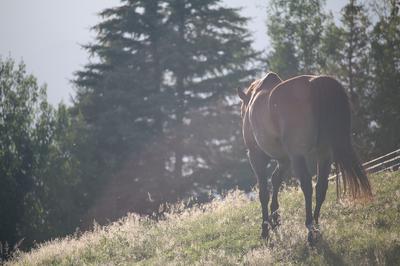 Our personal alarm clock Reggie woke everyone up. That was his legitimate purpose, waking everyone up at the crack of dawn. My eyes slipped open and I walked over to the stable door, tossing my head out of the open top half and nickered to the nearby mare and foal paddock. A foal nickered back and his mother nodded to me knowingly, then herded him away from the fence.