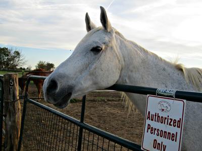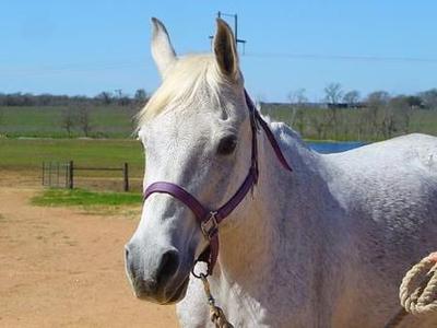 This picture is of Kashan. In case you don't know, he’s a light gray gelding Arabian, age of 26, height of 15.2 hands. He was donated by Mary Beth Read in October of 2009.