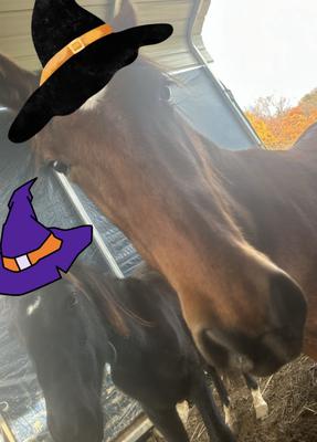 This year might not be the most outgoing costume but is most definitely the most trendy because as you can see my horses Linda and Posty are dressed up as 6 & 7! My other two horses, Twisted Tea and Whiskey Glasses, were just regular witches!