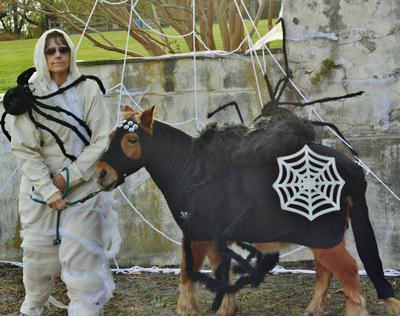 I have wanted to make my horse into a spider for the last couple of years. This year I was able to get the costume done. I am dressed up as a spider victim. (Poorly executed as my photographer didn't show up so was trying to get pictures with camera timer)